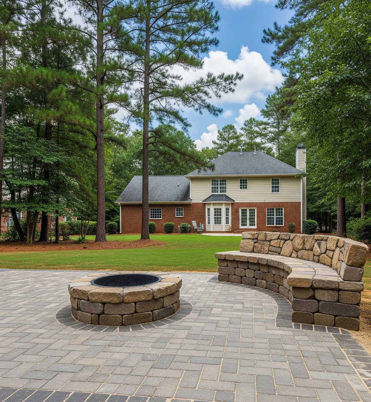Paver Patio with Fire Pit and Curved Seating Wall in McDonough